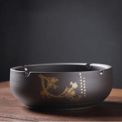 Découvrez notre joli cendrier noir mat orné d'un dessin doré ! Sa couleur foncé permet au dessin d'être mis en valeur et offre au cendrier un design élégant et épuré. Gardez votre maison propre et saine grâce à ce récupérateur de cendre et de mégot doté d'une grande capacité de stockage !